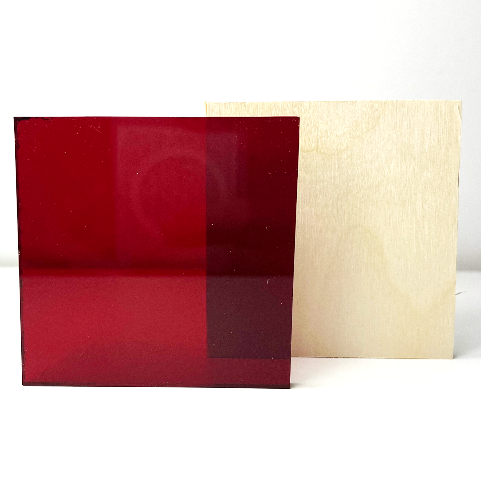 Transparent red acrylic sheets for laser cutting, engraving, signage, crafts, and displays – perfect for makers, artists, schools, and businesses! Transparent acrylic sheets have varying degrees of light transmission, but all will allow you to see through the material. As such, these sheets are often referred to as translucent .